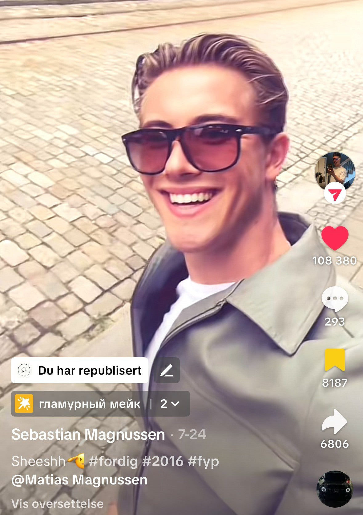 Overshirten tok helt av på TikTok – Sebastian brukte den i flere videoer med over 2M+ visninger tilsammen.